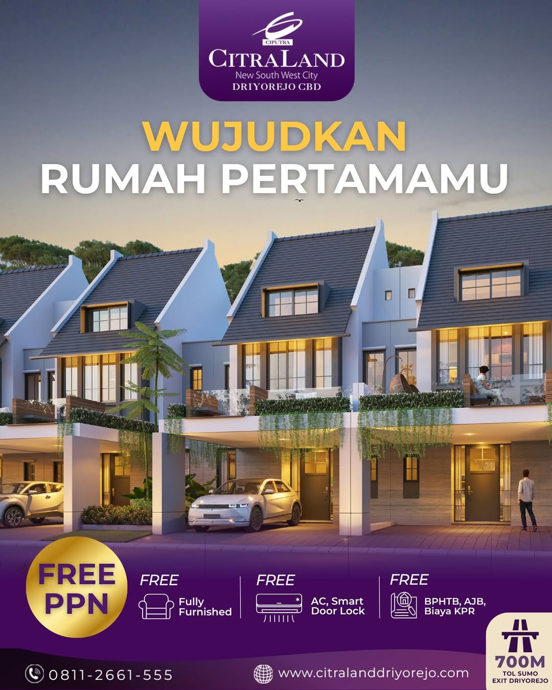 Yang pertama reputasi developer sangat baik. Lalu faktor kedua adalah lokasi CitraLand Driyorejo CBD aksesnya sangat dekat dengan jalan tol